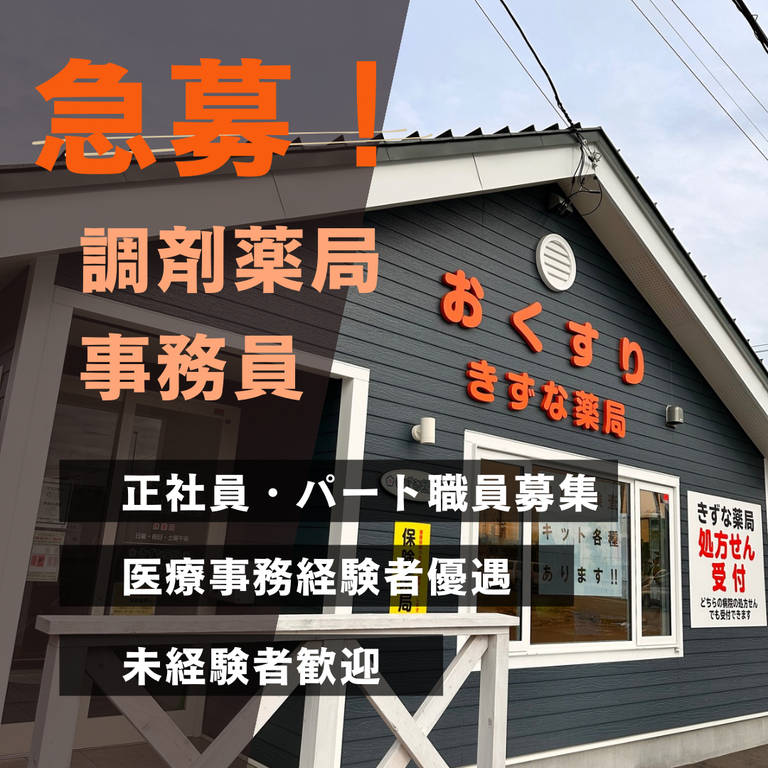 只今きずな薬局では事務員を急募しています❗❗❗