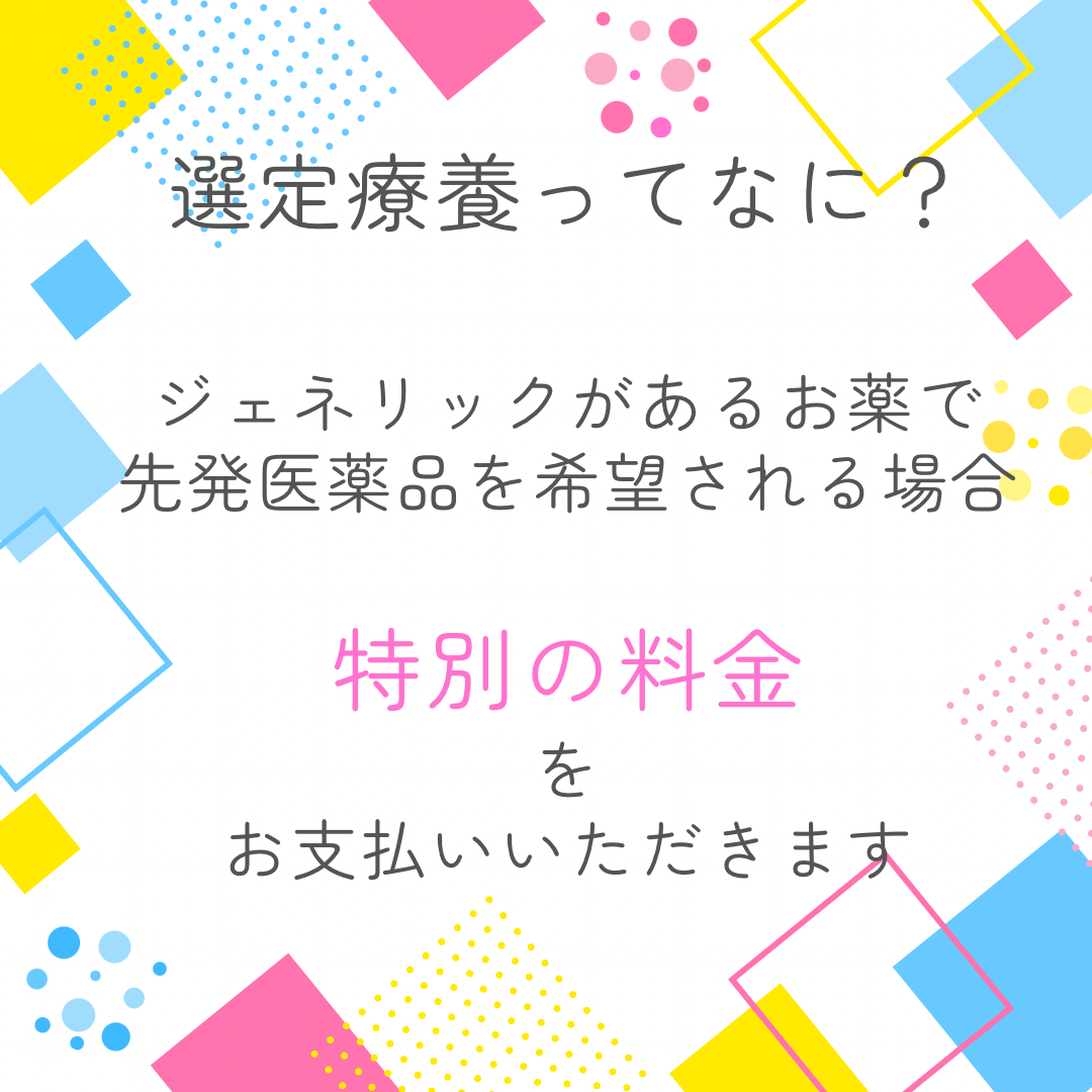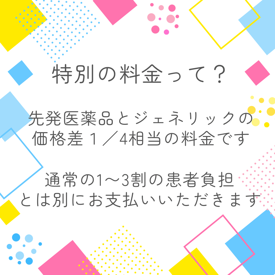 後発医薬品(ジェネリック)があるお薬で、先発医薬品の処方を希望される場合、特別の料金をお支払いいただきます。